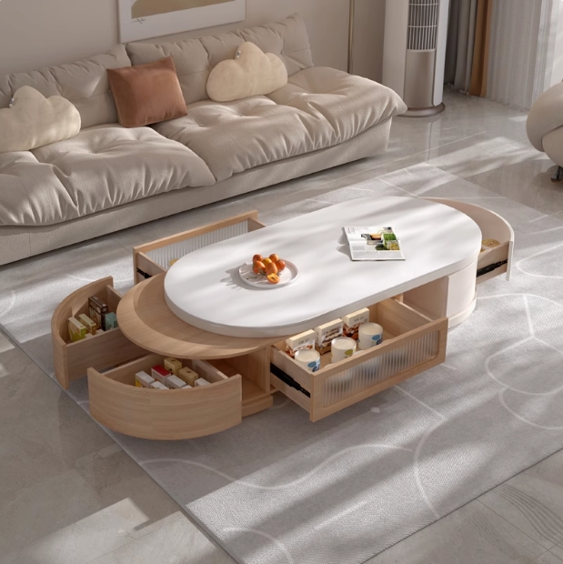 北欧奶油风椭圆岩板可伸缩茶几电视柜组合家用客厅小户型简约现代