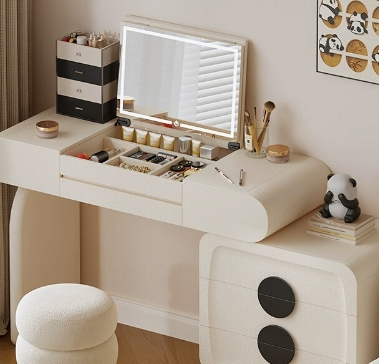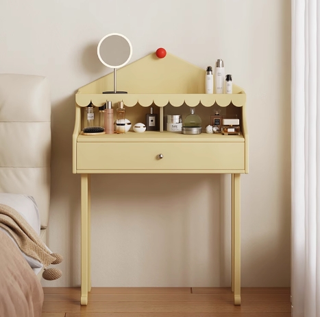 奶油风床头柜化妆台一体小型40cm可爱三斗柜梳妆台翻盖镜子可折叠