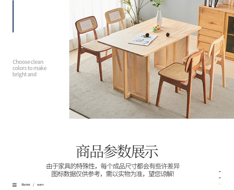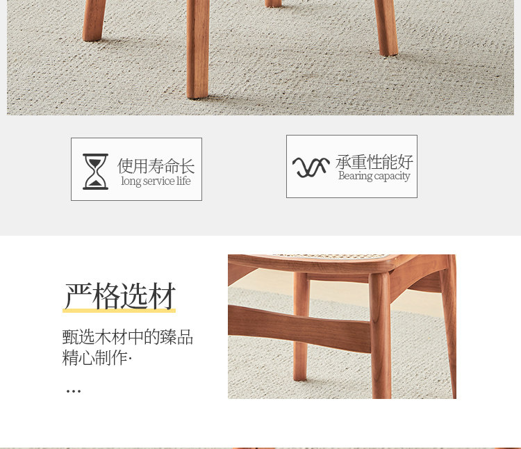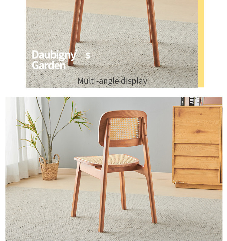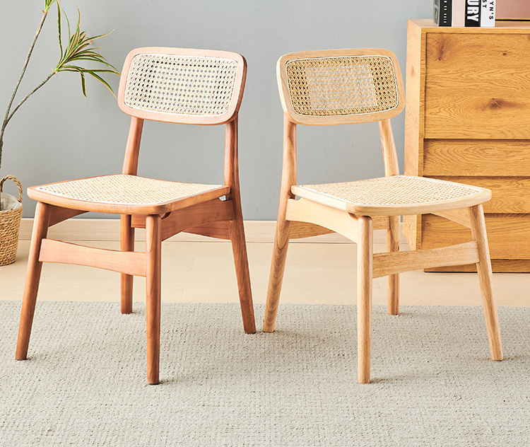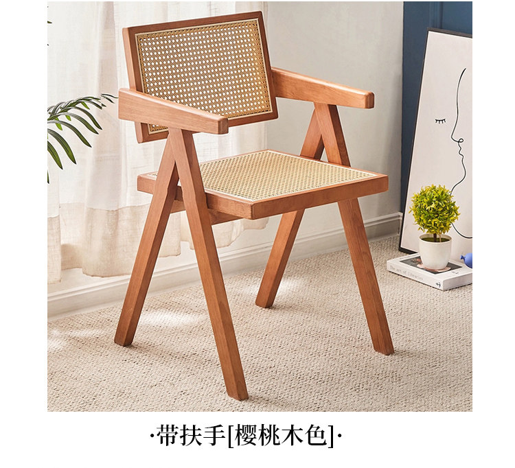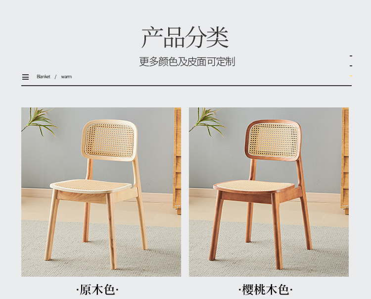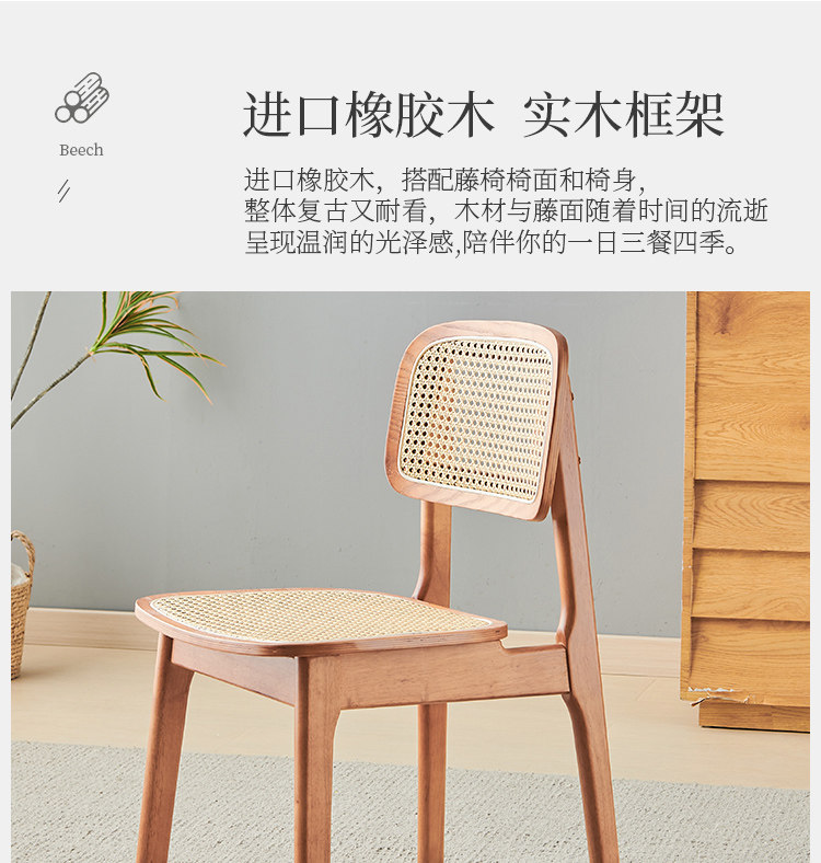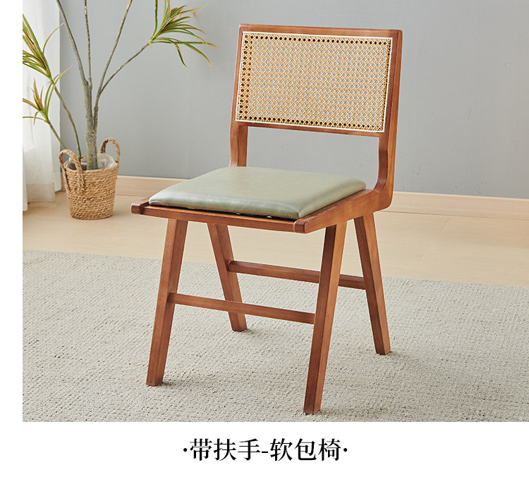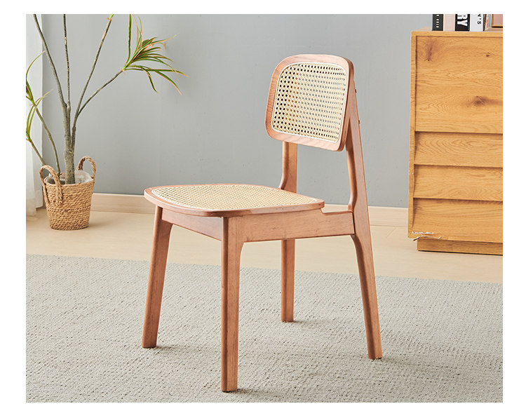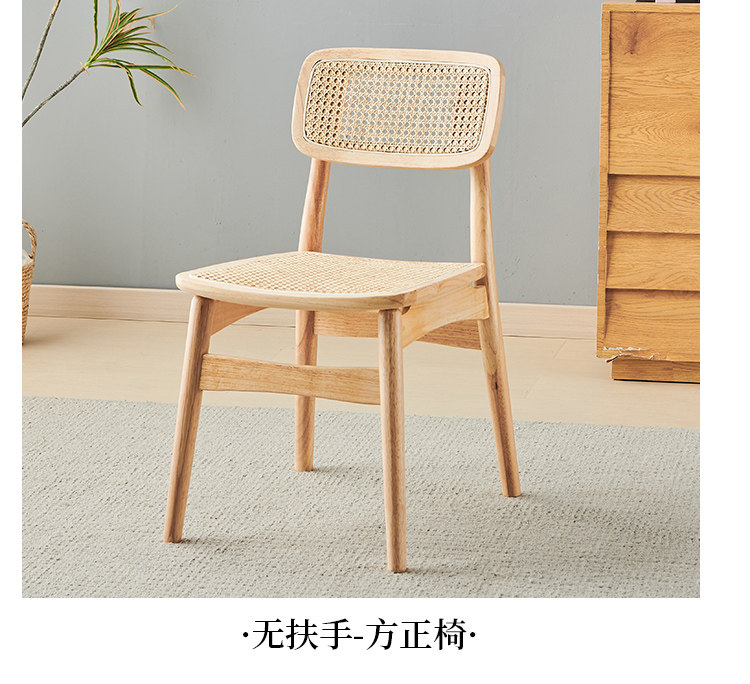 名称:实木餐椅北欧藤编椅子餐桌椅原木凳子家用靠背椅侘寂风法式复古