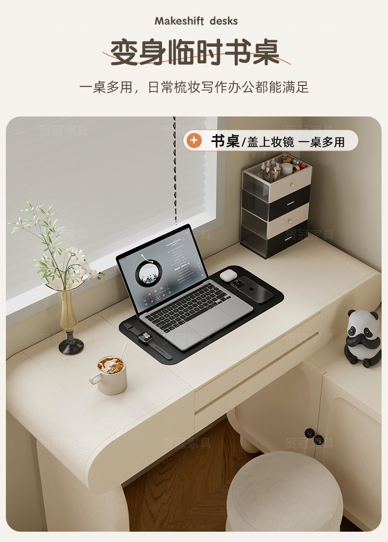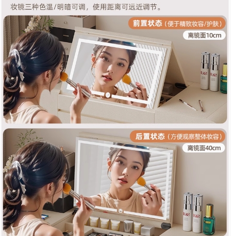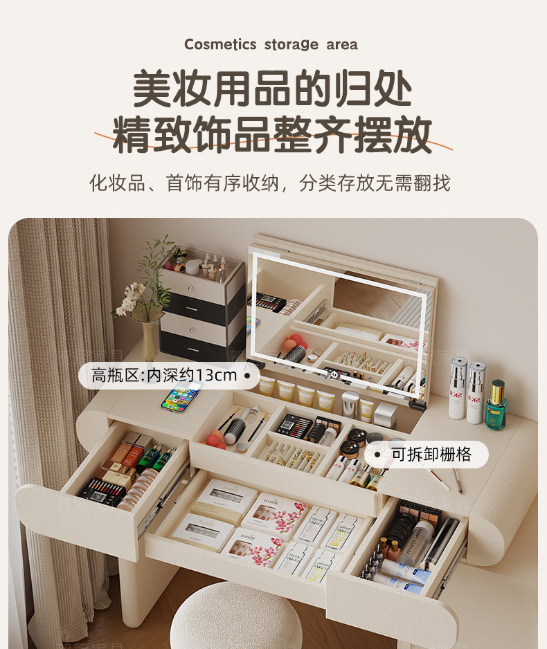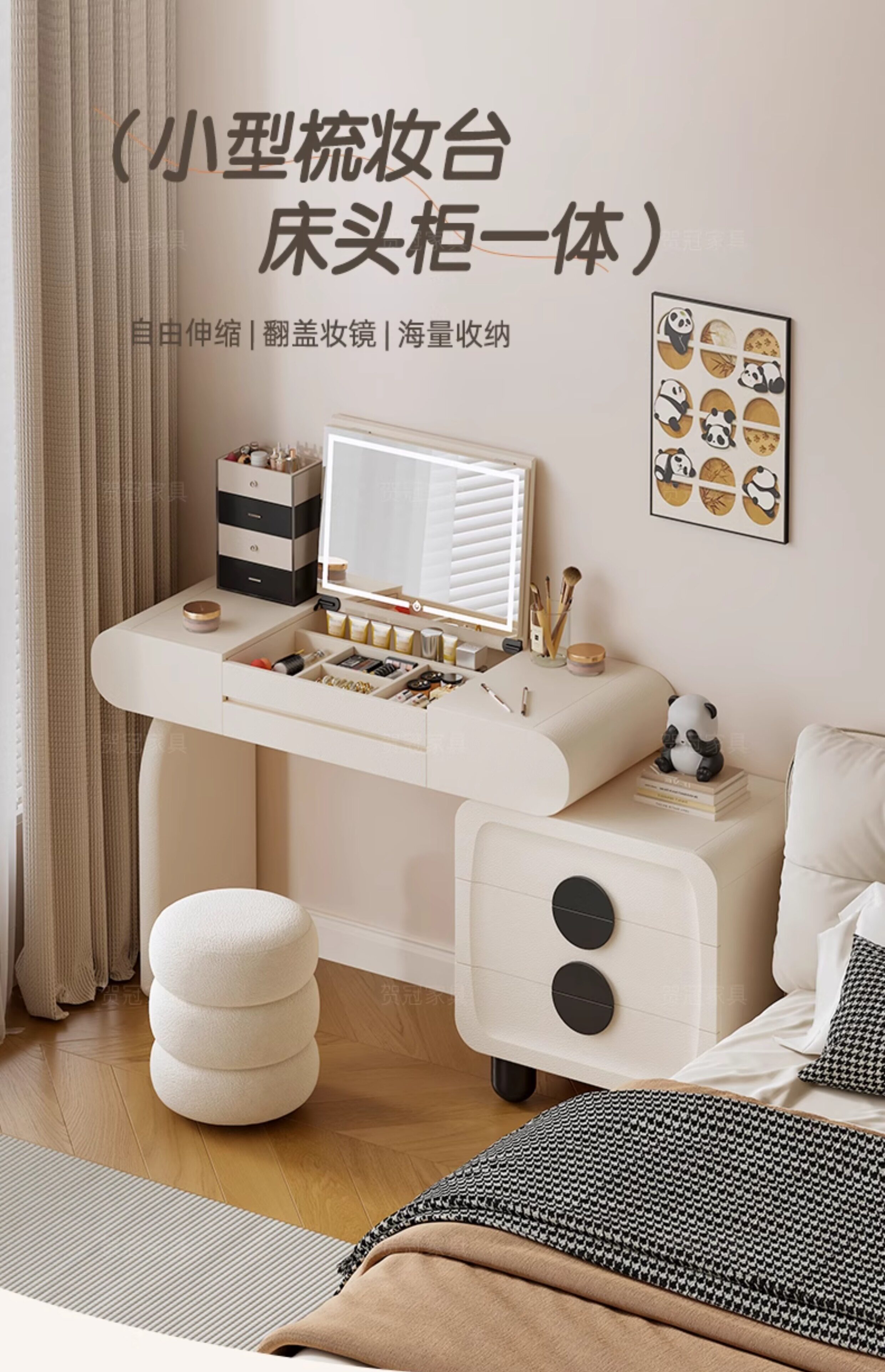 名称:奶油风床头柜化妆台一体小型40cm可爱三斗柜梳妆台翻盖镜子可折叠