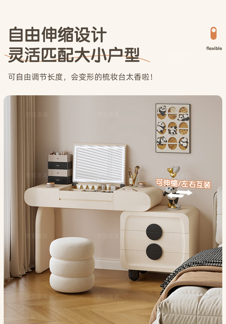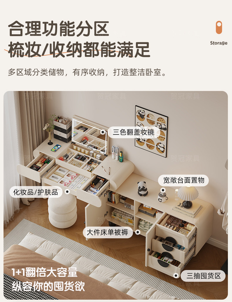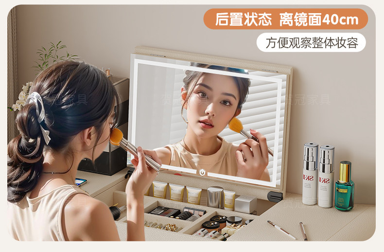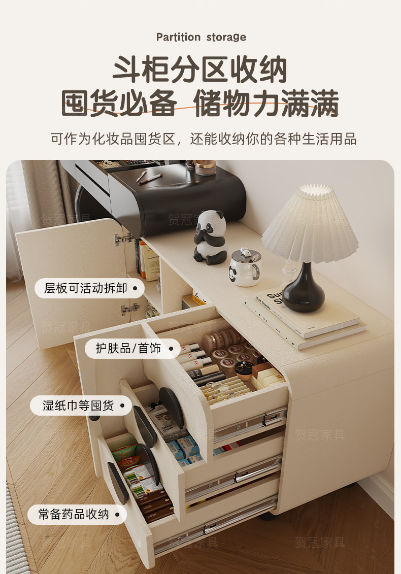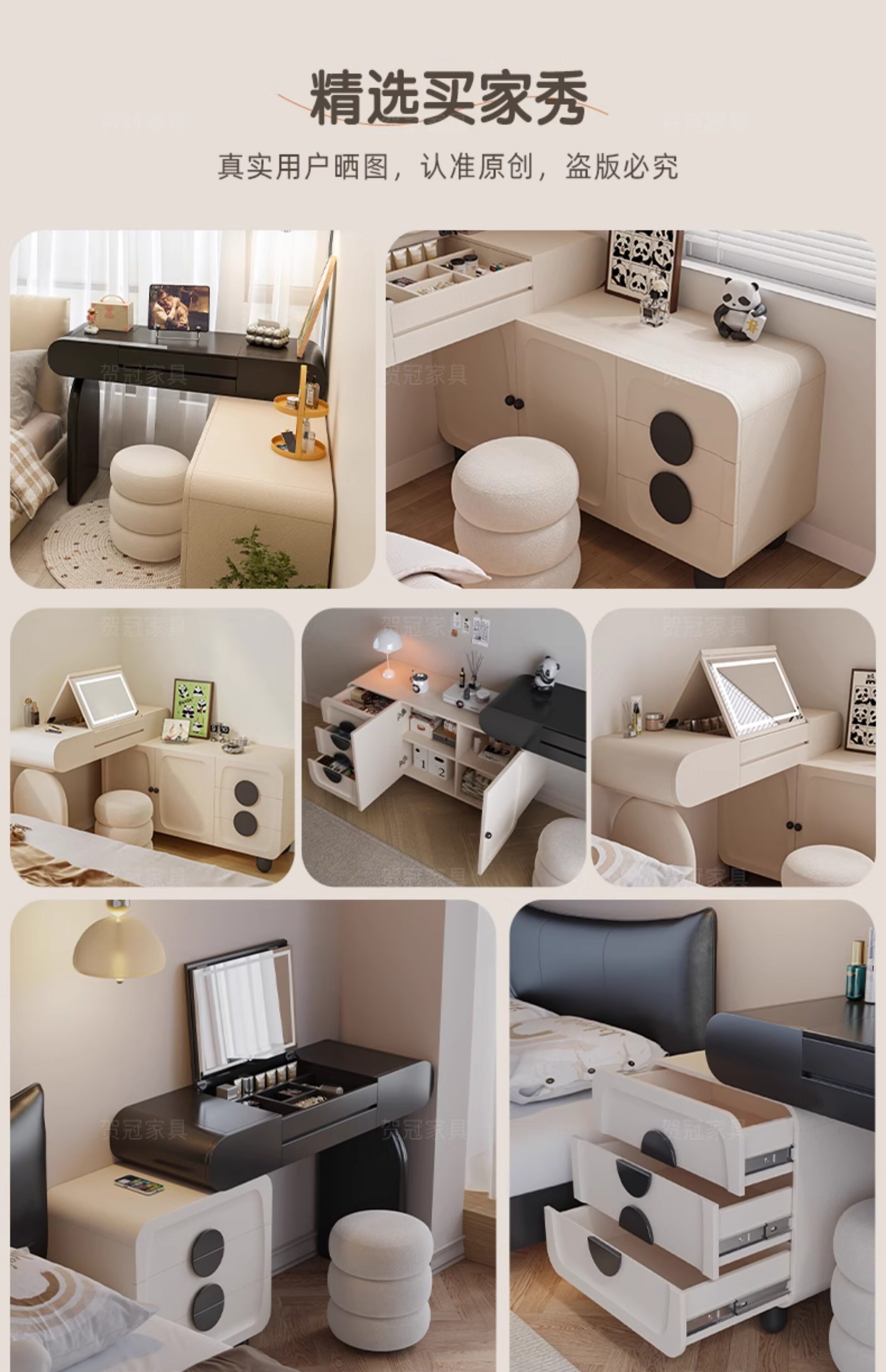 名称:奶油风床头柜化妆台一体小型40cm可爱三斗柜梳妆台翻盖镜子可折叠