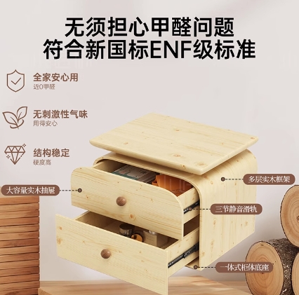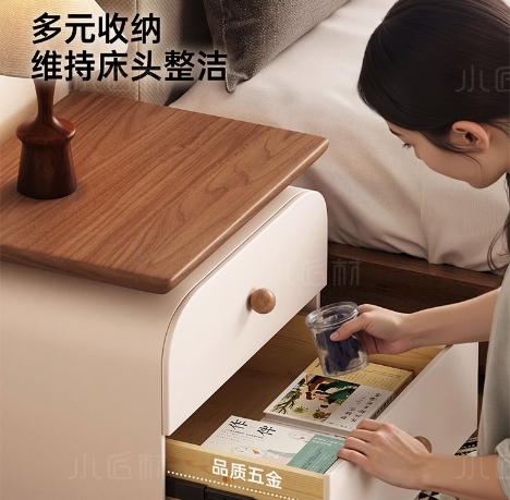 名称:免安装实木床头柜2025新款小型家用卧室中古奶油风简约现代收纳柜