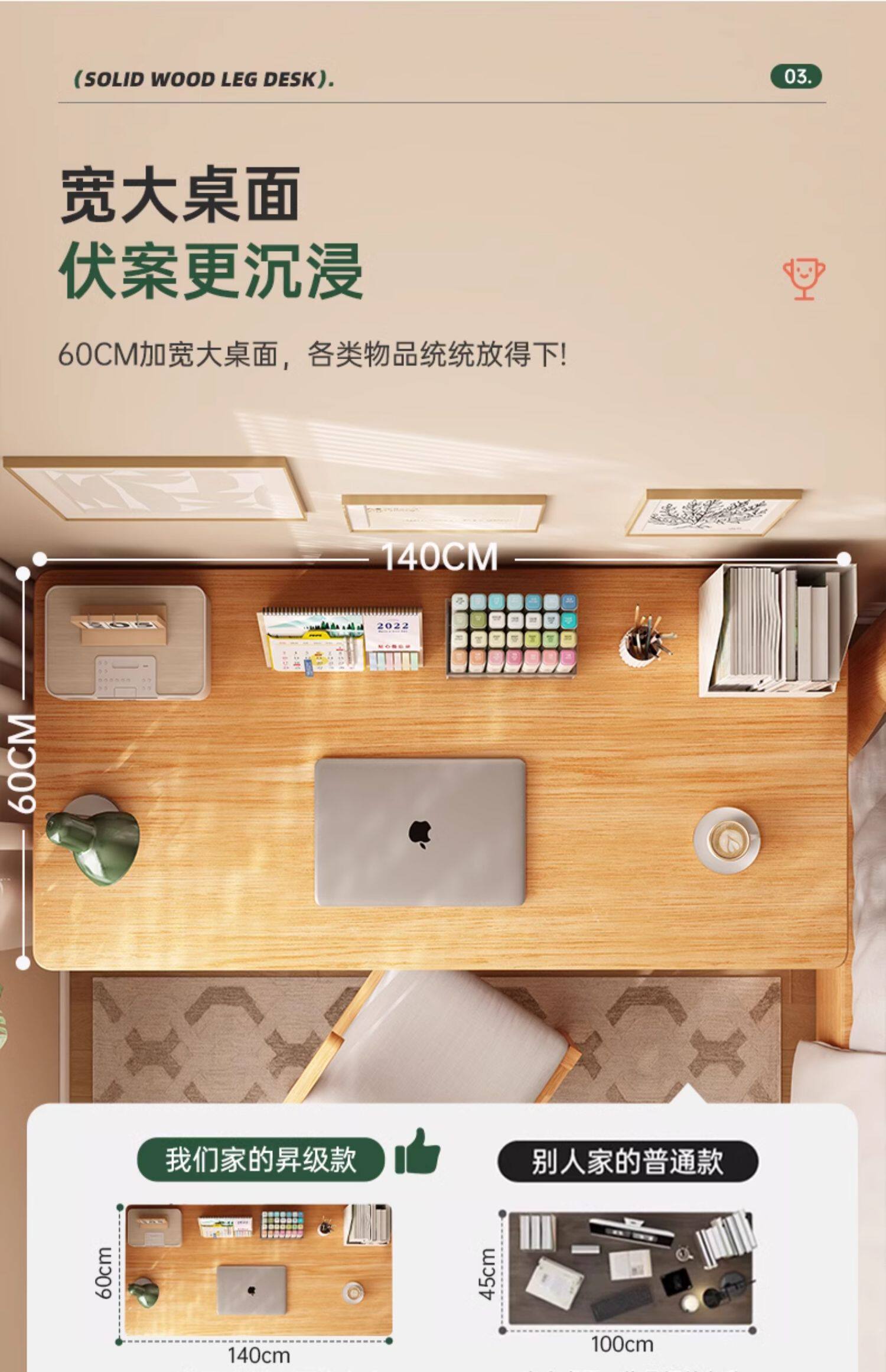 实木电脑桌台式家用书桌简约办公桌现代卧室学生写字桌长条工作台
