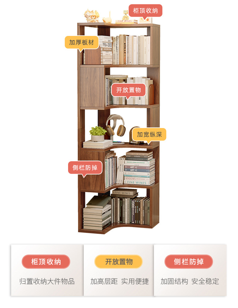 名称:书架落地置物架一体靠墙转角柜墙角书柜客厅卧室收纳架书房储物架